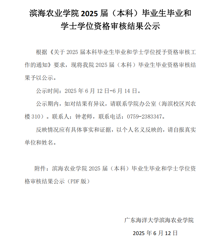滨海农业学院2025届(本科)毕业生毕业和学士学位资格审核结果公示(PDF版).pdf