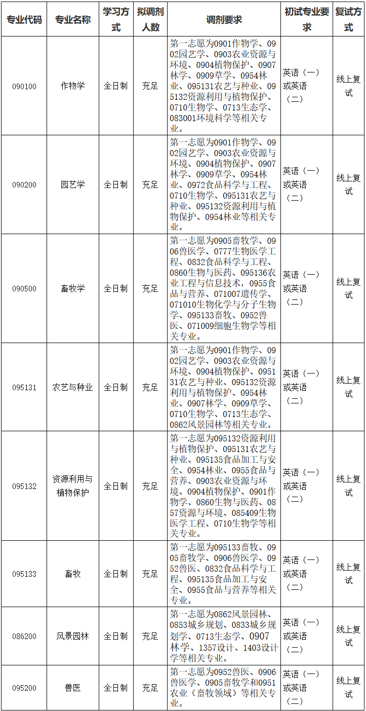 根据2026年研究生招生工作安排,我院作物学等学科及学位点有调剂名额。欢迎各位考生报考。