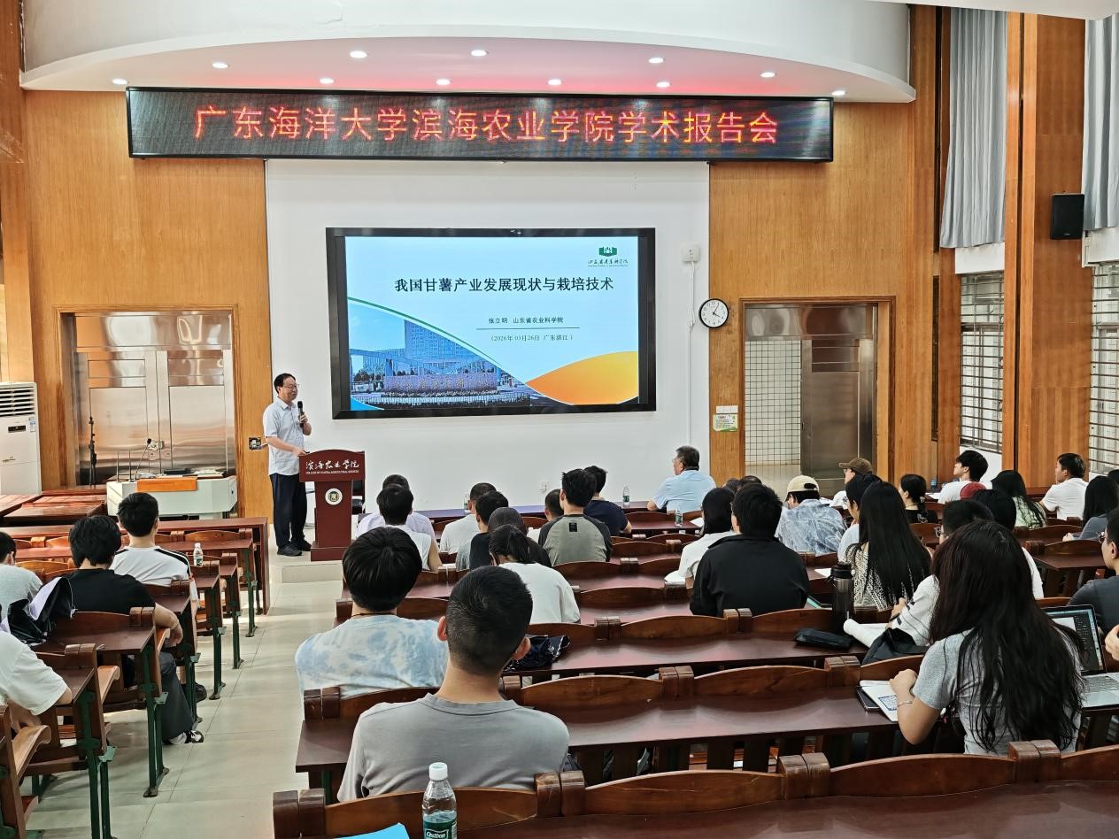 为助力师生把握我国甘薯产业发展前沿动态,掌握甘薯优质高效栽培核心技术,拓宽学术视野,3月26日下午,广东海洋大学滨海农业学院在湖光校区兴农楼109室举办《我国甘薯产业发展现状与栽培技术》学术报告。山东省农业科学院二级研究员张立明研究员受邀主讲,学院党委书记郑殿峰教授主持,80余名师生到场聆听交流。