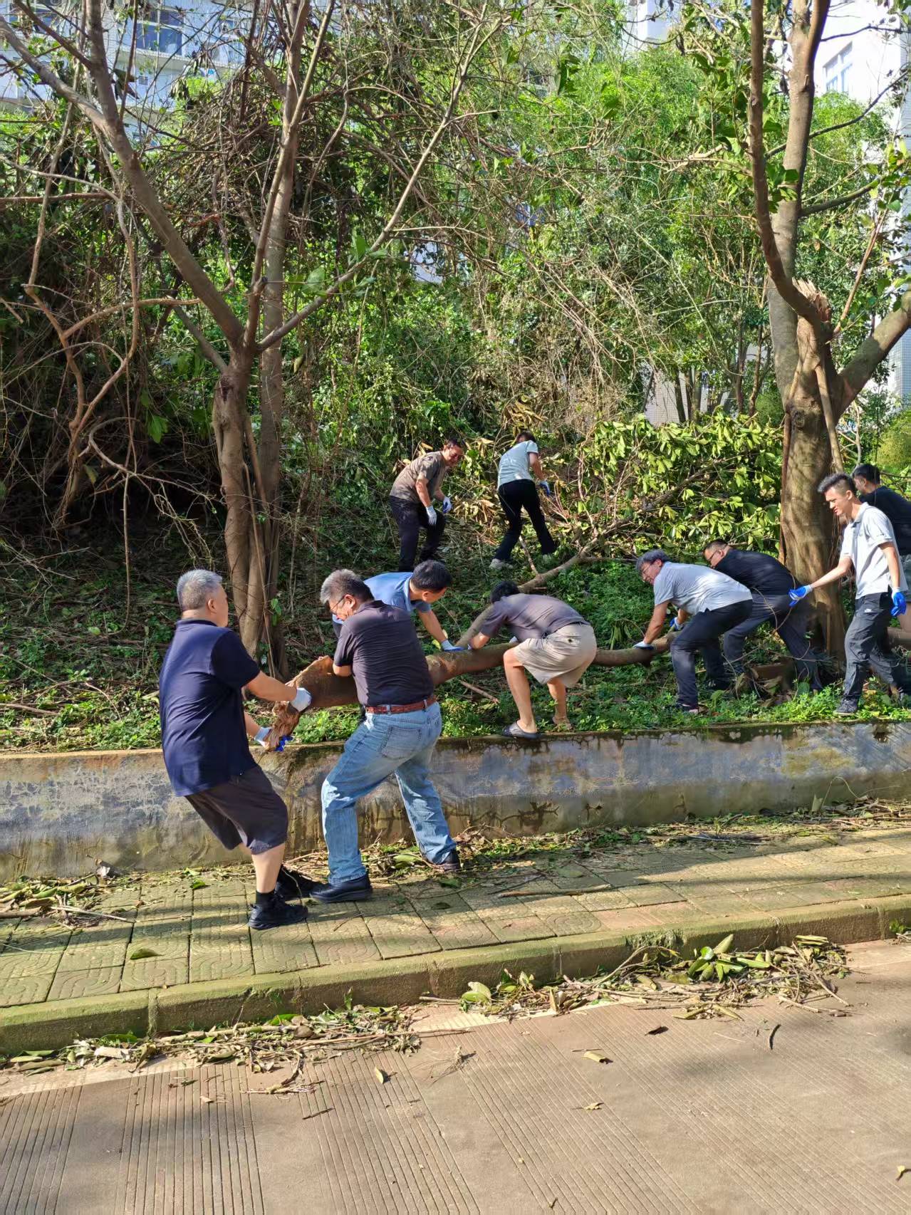 10月5日,第21号台风 “麦德姆” 在湛江市徐闻县东部沿海登陆,湖光校区的校园环境和基础设施遭受严重破坏,校园内树木倒伏、断枝遍地、道路受阻,满目疮痍。6日,学院党委组织党员先锋队第一时间投入到灾后清理重建工作中,重点负责清理兴农楼周围和附近主干道倒伏树木,打通校园师生生活、工作通道。8日,国庆、中秋假期最后一天,为尽快消除近期台风过境对校园环境造成的影响,有效防范公共卫生风险,保障师生身体健康,确保复学复课工作平稳有序。学院党委积极响应关于台风灾后校园重建与卫生防疫工作的指示要求,组织师生开展“救灾复学,净化校园”爱国卫生运动。