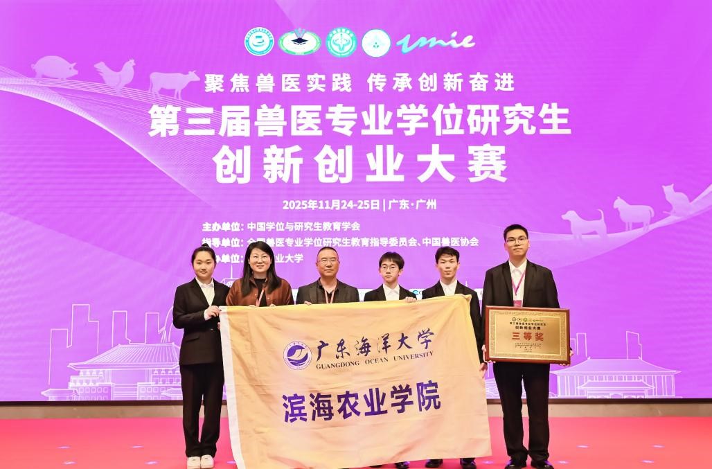 广东海洋大学滨海农业学院动物医学系李俊玫博士与李有全研究员共同指导的“肠道安‘益’队”(成员:陈炳豪、谢煜恒、朱俊儒、王霁珂)凭借《复合益生菌制剂防治幼畜腹泻的创新研发与应用》项目脱颖而出,荣获大赛三等奖。