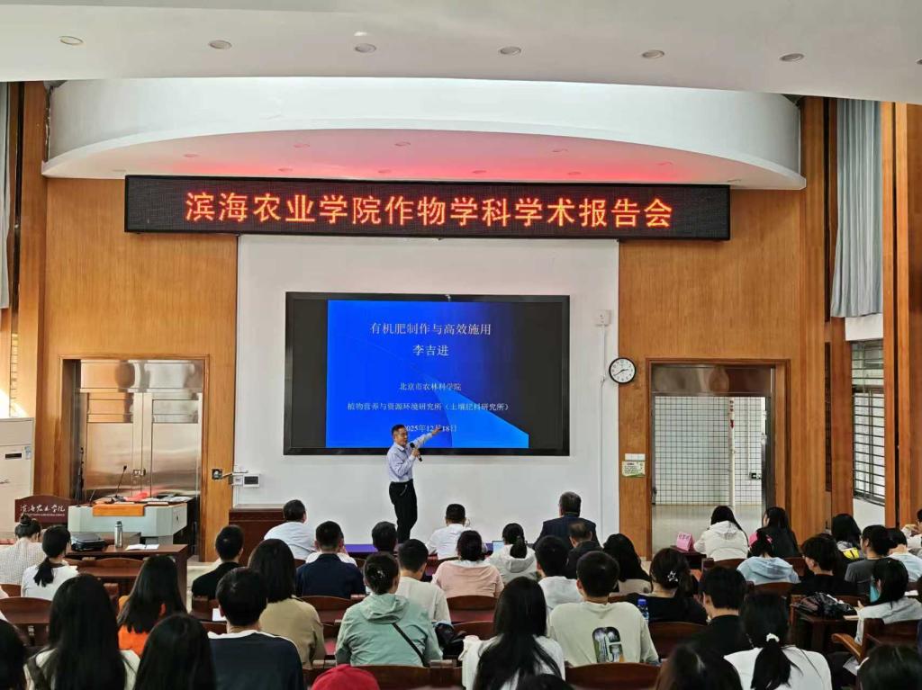 12月18日,应滨海农业学院作物学学科邀请,北京市农林科学院李吉进研究员和郭新宇研究员在广东海洋大学湖光校区兴农楼109室分别作了题为《有机肥制作与高效利用》和《数字植物技术装备研究及应用》的学术报告。报告会由学院党委书记、作物学学科带头人郑殿峰教授主持。国家耐盐碱水稻技术创新中心华南中心副主任江行玉教授,农学系主任薛迎斌副教授、副主任饶刚顺博士及作物学学科师生代表90余人聆听报告。