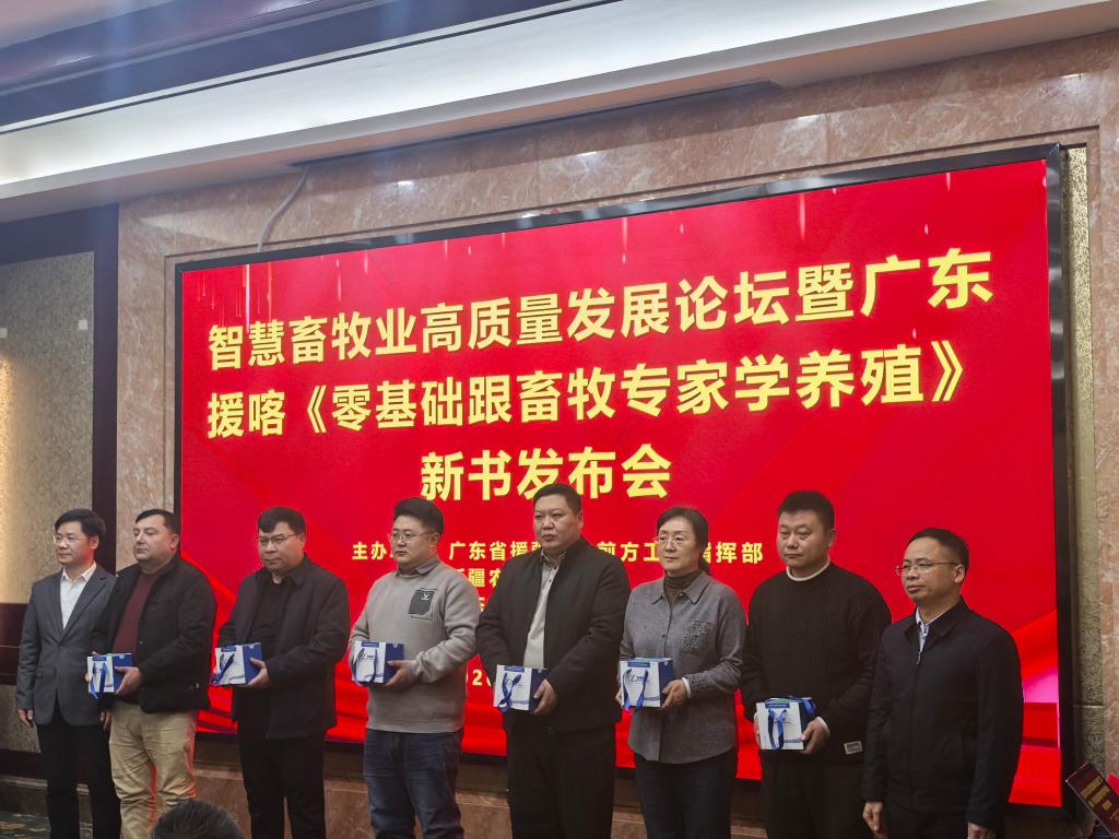 为服务南疆畜牧业发展,深化粤新协作内涵,推进科技援疆和科普成果转化,1月16日,由广东省对口支援新疆工作前方指挥部、新疆农业大学和广东海洋大学共同主办的智慧畜牧业高质量发展论坛暨广东援喀《“零基础”跟畜牧专家学养殖》新书发布会在新疆喀什举行。新疆高校、科研院所、地方主管部门及企业代表50余人参会。广东海洋大学滨海农业学院院长马驿教授、畜牧学科带头人甘尚权研究员、马健副教授、杜春梅博士及研究生代表参会。会议由马驿主持。