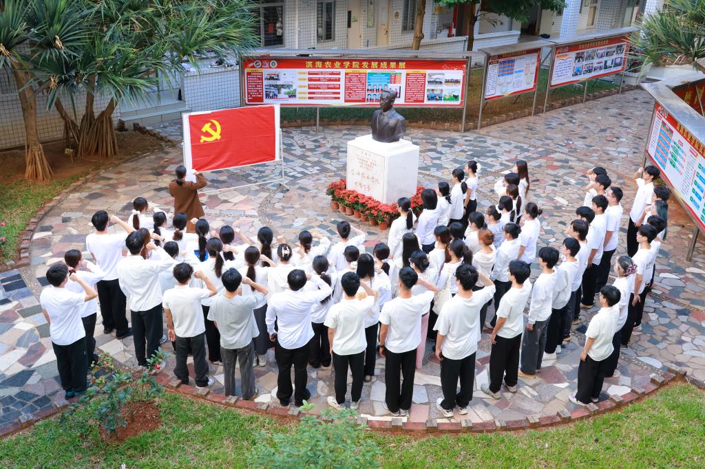 2025年12月17日下午,滨海农业学院在袁隆平院士铜像前举行2025年预备党员集体入党宣誓仪式。学院党委书记郑殿峰、党委副书记王继全、学院正科级干部刘斌以及2025年新发展预备党员参加仪式。